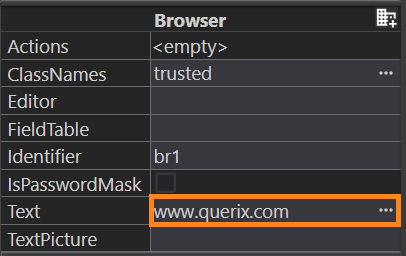 DEFINE br ui.Browser ... LET br = ui.Browser.ForName("br1") CALL br.setText("www.bloomberg.com") |