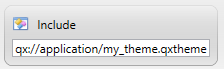 qx://application/file_name - to include a theme file added to the 4gl program as a requirement: