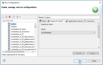 Only deployed applications can be run via LyciaDesktop from the connection dialog or from the command line.