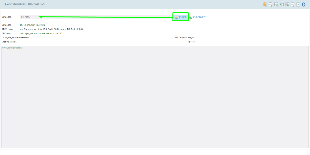 To change the database name before tables creation click the "DB-SET" button, type the name of the existent database and press Enter.
