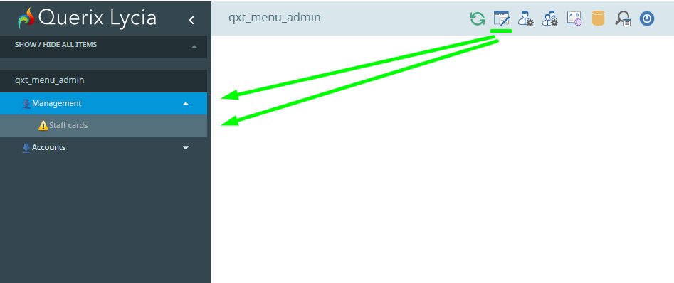 All menu table names start with the "qxt_" prefix. Users may do all the operations (create/delete/load/unload) with the tables separately by using the rest of the toolbar options: