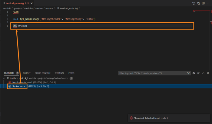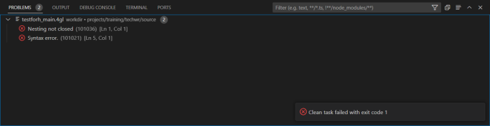 At failed compilation, you will receive the following indicators: